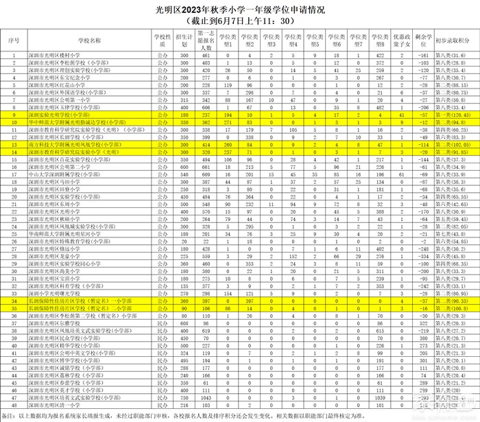 从家在论坛网友爆料的信息显示,如凤凰学校小一往年八类生源都可以上的凤凰学校,今年录取到二类,截止6月7日中午11:30,南方科技大学附属光明凤凰学校初步录取积分达到第二类102.05分。