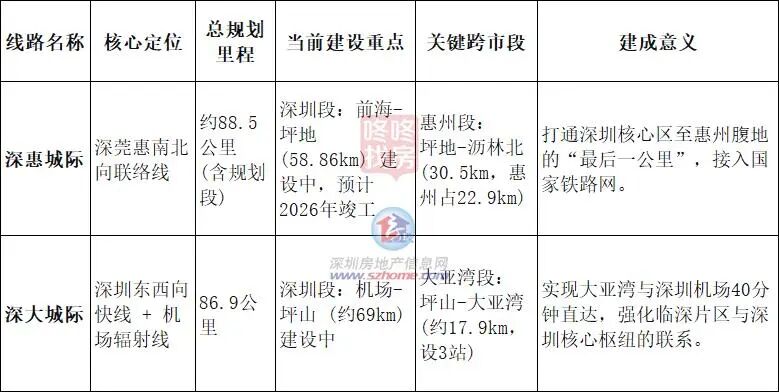 除了地铁14号线外,深圳至大亚湾等城际铁路最近也传来新进展。